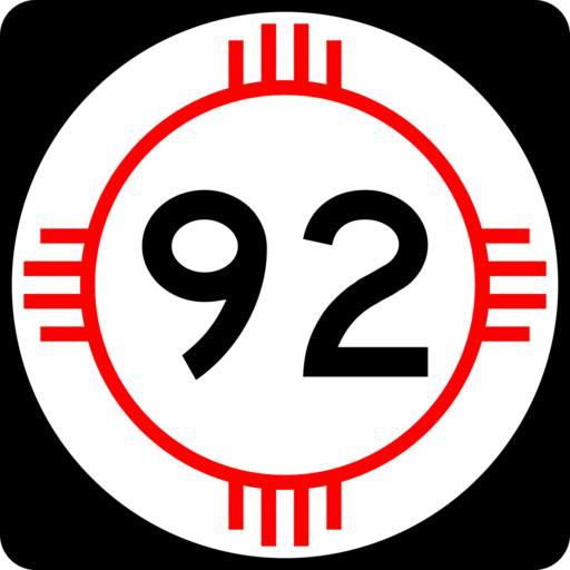 Keywords: New Mexico 92.svg 600 mm by 600 mm 24 in by 24 in New Mexico state road shield made to the specifications of the http //nmshtd state nm us/upload/images/Plans_Specs_Estimates/Division 20700/701/701 pdf PS E Standard Drawings Uses the Roadgeek 2005 fonts United States law does not permit the copyrighting of typeface designs and the fonts are meant to be copies of a U S Government-produced work anyway self-created using Inkscape and Image US DOT FHWA MUTCD SHS 2004 3-7 M1-6 450x450mm 00 svg 2008-03-26 Mr Matté Own work all rights released Public domain New Mexico State Road shields Shields created by User Mr Matté