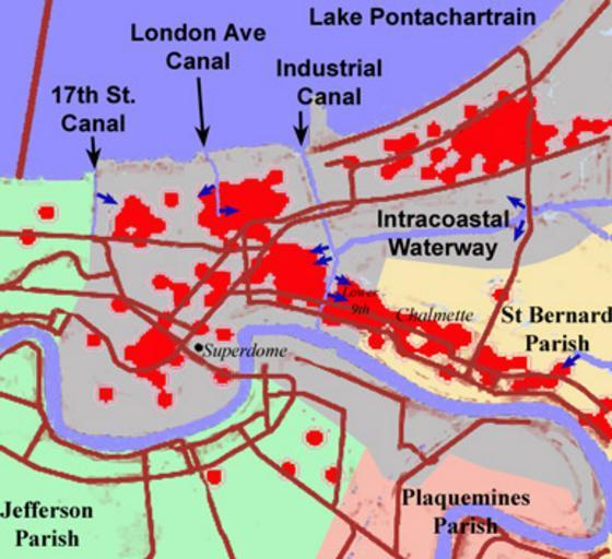 Keywords: New-Orleans-deaths.jpg en wikipedia 2012 May 31 map en Sketch Map showing Katrina deaths in New Orleans and adjacent parishes red dots and principal canal levees/floodwalls which were breached Red dots for deaths come from http //www nola com/hurricane/katrina/pdf/102305/1023A01 pdf The Times Picayune Dark Blue arrows show levee/flood wall breaches from the above reference and also http //www nola com/hurricane/katrina/pdf/102405/1024A01 pdf this one I used a several references to locate the county boundaries principal roads and the canals Sketch Map drawn by Op Deo October 25 2005 2005-10-25 Own Op Deo wikipedia en en wikipedia Op Deo Original upload log page en wikipedia New-Orleans-deaths jpg 2005-10-25 11 22 Op Deo 387×354 28533 bytes <nowiki>Sketch Map showing Katrina deaths in New Orleans and adjacent parishes red dots and principal canal levees/floodwalls which were breached Red dots for deaths come from http //www nola com/hurricane/katrina/pdf/102305/1023A01 pdf The Times Picayune D</nowiki> 2005-10-25 11 29 Op Deo 387×354 75591 bytes <nowiki> Summary Sketch Map showing Katrina deaths in New Orleans and adjacent parishes red dots and principal canal levees/floodwalls which were breached Red dots for deaths come from http //www nola com/hurricane/katrina/pdf/102305/1023A01 pdf The Time</nowiki> __NOTOC__ Maps of New Orleans Hurricane Katrina aftermath in New Orleans |
