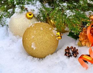 Keywords: new year christmas holiday background balls tree snow winter still life