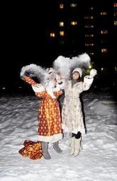 Keywords: new year's eve christmas snow holiday dreams lights winter postcard surprise evening city idea santa claus bag snow maiden snowdrifts emotions joy