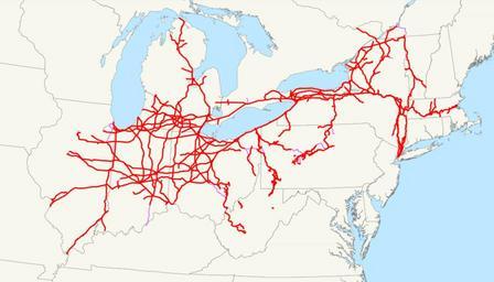 Keywords: New York Central Railroad system map (1918).svg This is a map of the New York Central Railroad system as of 1918 with trackage rights in purple The two disconnected pieces in West Virginia are not an error; they are remaining portions of the Little Kanawha Syndicate properties that were partially controlled by the NYC-owned P LE Email me if you would like a copy of the GIS data I created modified from Bureau of Transportation Statistics North American Transportation Atlas Data or if you see any errors 2008-11-09 own assumed NE2 System maps of defunct U S railroads Maps of New York Central Railroad |