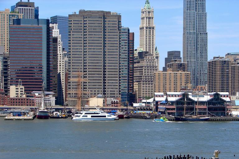 Keywords: new york city buildings skyscrapers urban sky clouds skyline architecture river water harbor ships boats outside