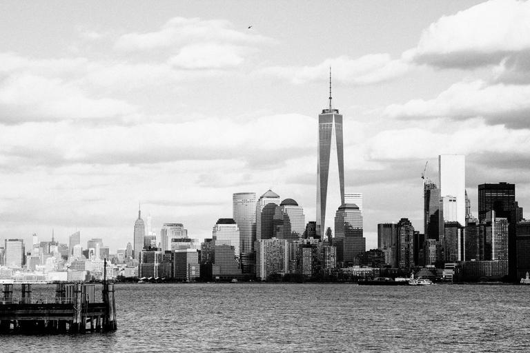 Keywords: new york city nyc buildings architecture towers high rises skyscrapers water sky clouds black and white urban