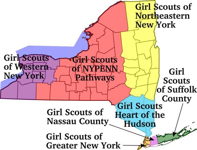 Keywords: New-york-gsusa.svg Map of Girl Scout Councils in New York my work based on Wikipedia county maps 2009-06-23 Emma Pease Erp Original upload log en wikipedia New-york-gsusa svg 2009-06-22 19 36 Erp 6599×5030× 132779 bytes <nowiki> Map of Girl Scout councils in New York State my work based on the wikipedia county maps 2009-06-23 Emma Pease </nowiki> Category Girl Scouts of the USA Council maps Scouting in New York |