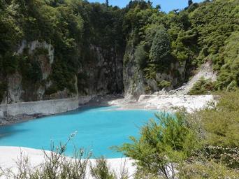 Keywords: new zealand nature landscape volcanism volcanic crater north island lake pond lime forest