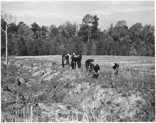 | Keywords: Newberry County, South Carolina. CCC enrollees planting kudzu on gully bank on C. C. Spoon's farm. . . . - NARA - 522757.tif Scope and content Full caption reads as follows Newberry County South Carolina CCC enrollees planting kudzu on gully bank on C C Spoon's farm This area which was grown up in scrubby trees has been cleared Within three or four years a cover of luxuriant vegetation will not only control erosion but furnish excellent grazing for livestock General notes 522757 Local identifier 83-G-44637 Department of Agriculture Bureau of Agricultural Economics Division of Economic Information ca 1922 - ca 1953 Still Picture Records Section Special Media Archives Services Division NWCS-S National Archives at College Park 8601 Adelphi Road College Park MD 20740-6001 04/1941 Record group Record Group 83 Records of the Bureau of Agricultural Economics 1876 - 1959 Record group ARC 412 Photographic Prints Documenting Programs and Activities of the Bureau of Agricultural Economics and Predecessor Agencies compiled ca 1922 - ca 1947 documenting the period ca 1911 - ca 1947 Series ARC 521048 File unit File unit ARC Variant control numbers NAIL Control Number NWDNS-83-G-44637 yes Other versions <gallery> File Newberry_County _South_Carolina _CCC_enrollees_planting_kudzu_on_gully_bank_on_C _C _Spoon's_farm _ _ _ _-_NARA_-_522757 tif tif File Newberry_County _South_Carolina _CCC_enrollees_planting_kudzu_on_gully_bank_on_C _C _Spoon's_farm _ _ _ _-_NARA_-_522757 jpg jpg </gallery> NARA-cooperation PD-USGov NARA TIF images with categorized JPGs 1941 in Newberry County |