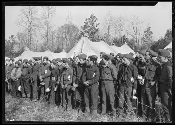 Keywords: nara:arcid=532780 u.s. national archives usnationalarchives lewis hine lewishine blackandwhite monochrome photo border outdoor black and white Original Caption: Newly-arrived replacements at CCC Camp, TVA #22, near Esco, Tennessee, lined up before their first meal in camp. The boys arrived at New Tazewell on November 17, 1933, in day coaches form New York, tired and hungry, but eager for their new life. For many of these boys, this was their first time away from home, November 1933 U.S. National Archives’ Local Identifier: 142-H-162 Photographer: Hine, Lewis Subjects: New Deal, 1933-1939 Rural areas Tennessee (United States, North and Central America) state Water projects Persistent URL: research.archives.gov/description/532780 Repository: Still Picture Records Section, Special Media Archives Services Division (NWCS-S), National Archives at College Park, 8601 Adelphi Road, College Park, MD, 20740-6001. For information about ordering reproductions of photographs held by the Still Picture Unit, visit: www.archives.gov/research/order/still-pictures.html Reproductions may be ordered via an independent vendor. NARA maintains a list of vendors at www.archives.gov/research/order/vendors-photos-maps-dc.html Access Restrictions: Unrestricted Use Restrictions: Unrestricted Original Caption: Newly-arrived replacements at CCC Camp, TVA #22, near Esco, Tennessee, lined up before their first meal in camp. The boys arrived at New Tazewell on November 17, 1933, in day coaches form New York, tired and hungry, but eager for their new life. For many of these boys, this was their first time away from home, November 1933 U.S. National Archives’ Local Identifier: 142-H-162 Photographer: Hine, Lewis Subjects: New Deal, 1933-1939 Rural areas Tennessee (United States, North and Central America) state Water projects Persistent URL: research.archives.gov/description/532780 Repository: Still Picture Records Section, Special Media Archives Services Division (NWCS-S), National Archives at College Park, 8601 Adelphi Road, College Park, MD, 20740-6001. For information about ordering reproductions of photographs held by the Still Picture Unit, visit: www.archives.gov/research/order/still-pictures.html Reproductions may be ordered via an independent vendor. NARA maintains a list of vendors at www.archives.gov/research/order/vendors-photos-maps-dc.html Access Restrictions: Unrestricted Use Restrictions: Unrestricted |