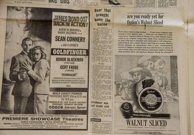Keywords: newspaper adverts advertisement vintage goldfinger film tobacco british 1964