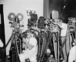 Keywords: Newsreel-Press-Fireside-Chat-1939.jpg national address by Franklin D Roosevelt at the White House Washington D C <br>The Library of Congress writes Photo probably taken for FDR's 1939 fireside chat on the invasion of Poland ¦ Date based on date of negatives in same range The only fireside chat of 1939 was the address of September 3 1939 http //www loc gov/pictures/item/hec2009013906/ Library of Congress Harris Ewing photographer 1939-09-03 PD-Harris-Ewing Fireside chats by Franklin Delano Roosevelt Camera operators |