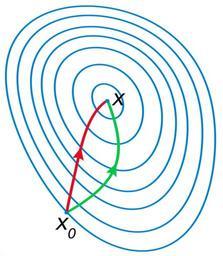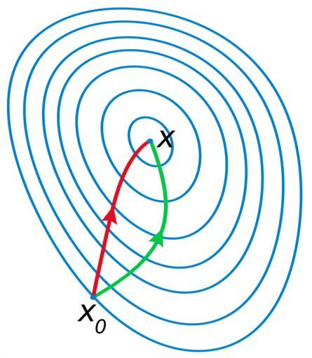 | Keywords: Newton optimization vs grad descent.svg A comparison of gradient descent green and Newton's method red for minimizing a function with small step sizes Newton's method uses curvature information to take a more direct route Porównanie metody najszybszego spadku linia zielona z metodą Newtona linia czerwona Na rysunku widać linie poszukiwań minimum dla zadanej funkcji celu Metoda Newtona używa informacji o krzywiźnie w celu zoptymalizowania ścieżki poszukiwań self-made with en Matlab Tweaked in en Inkscape 04 58 23 June 2007 UTC Oleg Alexandrov Source code <source lang matlab > Comparison of gradient descent and Newton's method for optimization function main the ploting window figure 1 ; clf; hold on; axis equal; axis off; colors red 0 867 0 06 0 14; blue 0 129 205/256; green 0 200 70/256; black 0 0 0; white 0 99 1 1 1; graphing settings lw 3; arrowsize 0 06; arrow_type 2; fs 13; the function whose contours will be plotted and its partials C 0 2 4 0 4 1 1 5; Tweak f by tweaking C f inline ' C 1 x-0 4 4+C 2 x 2+C 3 y+1 4+C 4 y 2+C 5 x y-1 ' 'x' 'y' 'C' ; fx inline ' 4 C 1 x-0 4 3+2 C 2 x+C 5 y ' 'x' 'y' 'C' ; fy inline ' 4 C 3 y+1 3+2 C 4 y+C 5 x ' 'x' 'y' 'C' ; fxx inline ' 12 C 1 x-0 4 2+2 C 2 ' 'x' 'y' 'C' ; fxy inline 'C 5 ' 'x' 'y' 'C' ; fyy inline ' 12 C 3 y+1 2+2 C 4 ' 'x' 'y' 'C' ; plot_contours f C blue white lw ; step size alpha 0 025; initial guess V0 -0 2182 -1 2585; x V0 1 ; y V0 2 ; z x; w y; run several iterations of gradient descent and Newton's method X x; Y y; Z z; W w; for i 0 200 grad descent u fx x y C ; v fy x y C ; x x-alpha u; y y-alpha v; X X x; Y Y y; newton's method u fx z w C ; v fy z w C ; mxx fxx z w C ; mxy fxy z w C ; myy fyy z w C ; M mxx mxy; mxy myy; V M\u; v; u V 1 ; v V 2 ; z z-alpha u; w w-alpha v; Z Z z; W W w; end plot X Y 'color' green 'linewidth' lw ; plot Z W 'color' red 'linewidth' lw ; plot text small 0 03; m length Z ; V Z m W m ; text V0 1 -2 small V0 2 -2 small 'x_0' 'fontsize' fs ; text V 1 +small V 2 +small 'x' 'fontsize' fs ; some small balls to hide some imperfections small_rad 0 015; ball V0 1 V0 2 small_rad blue ; ball V 1 V 2 small_rad blue ; save to eps ans svg saveas gcf 'Newton_optimization_vs_grad_descent eps' 'psc2' plot2svg 'Newton_optimization_vs_grad_descent svg' function plot_contours f C color color2 lw Calculate f on a grid Lx1 -2; Lx2 2; Ly1 -2; Ly2 2; N 60; h 1/N; XX Lx1 h Lx2; YY Ly1 h Ly2; X Y meshgrid XX YY ; Z f X Y C ; the contours h 0 3; l0 -1; l1 0 7; l0 h floor l0/h ; l1 h floor l1/h ; Levels -l0 1 5 h 0 0 h l1 0 78; Plot the contours with 'contour' in figure 2 and then with 'plot' in figure 1 This is to avoid a bug in plot2svg it can't save output of 'contour' figure 2 ; clf; hold on; axis equal; axis off; xmin 1000; ymin xmin; xmax -xmin; ymax -ymin; for i 1 length Levels figure 2 ; c stuff contour X Y Z Levels i Levels i ; m n size c ; if m > 1 n > 0 extract the contour from the contour matrix and plot in figure 1 l c 2 1 ; x c 1 2 l+1 ; y c 2 2 l+1 ; figure 1 ; plot x y 'color' color 'linewidth' 0 66 lw ; xmin min xmin min x ; xmax max xmax max x ; ymin min ymin min y ; ymax max ymax max y ; end end figure 1 ; some dummy text to expand the saving window a bit small 0 04; plot xmin-small ymin-small ' ' 'color' color2 ; plot xmax+small ymax+small ' ' 'color' color2 ; function arrow start stop thickness arrow_size sharpness arrow_type color Function arguments start stop start and end coordinates of arrow vectors of size 2 thickness thickness of arrow stick arrow_size the size of the two sides of the angle in this picture -> sharpness angle between the arrow stick and arrow side in radians arrow_type 1 for filled arrow otherwise the arrow will be just two segments color arrow color a vector of length three with values in 0 1 convert to complex numbers i sqrt -1 ; start start 1 +i start 2 ; stop stop 1 +i stop 2 ; rotate_angle exp i sharpness ; points making up the arrow tip besides the stop point point1 stop - arrow_size rotate_angle stop-start /abs stop-start ; point2 stop - arrow_size/rotate_angle stop-start /abs stop-start ; if arrow_type 1 filled arrow plot the stick but not till the end looks bad t 0 5 arrow_size cos sharpness /abs stop-start ; stop1 t start+ 1-t stop; plot real start stop1 imag start stop1 'LineWidth' thickness 'Color' color ; fill the arrow H fill real stop point1 point2 imag stop point1 point2 color ; set H 'EdgeColor' 'none' else two-segment arrow plot real start stop imag start stop 'LineWidth' thickness 'Color' color ; plot real stop point1 imag stop point1 'LineWidth' thickness 'Color' color ; plot real stop point2 imag stop point2 'LineWidth' thickness 'Color' color ; end function ball x y r color Theta 0 0 1 2 pi; X r cos Theta +x; Y r sin Theta +y; H fill X Y color ; set H 'EdgeColor' 'none' ; </source> Optimization Newton Method Files by User Oleg Alexandrov from en wikipedia Images with Matlab source code |