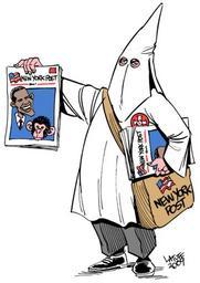Keywords: NewYorkPostObamaChimpCartoonCausesOutrage.png en A New York Post cartoon that some have interpreted as comparing President Barack Obama to a violent chimpanzee gunned down by police has drawn outrage from civil rights leaders http //www archive org/details/NewYorkPostObamaCartoonCausesOutrage Creator Carlos Latuff 2009-02-22 Cc-pd 2009 cartoons Caricatures of Barack Obama by Carlos Latuff New York Post Ku Klux Klan political cartoons