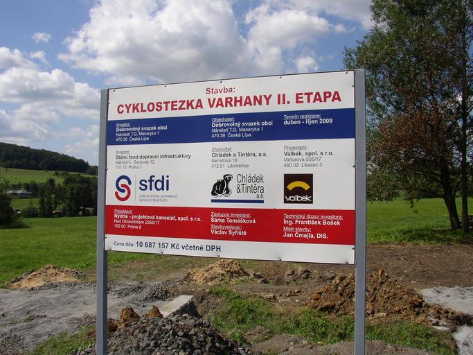 Keywords: Nformační cedule o výstavbě cyklostezky Varhany.JPG cs Informační cedule o výstavbě cyklostezky Varhany v Horní Libchavě own Mirek256 2009-08-23 Bikeways in the Czech Republic