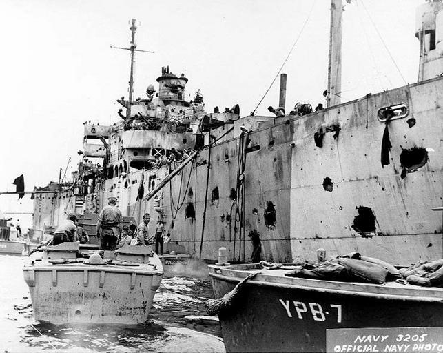 | Keywords: NH 96174.jpg Explosion of USS Mount Hood AE-11 in Seeadler Harbor Manus Admiralty Islands 10 November 1944 Salvage and rescue work underway on USS Mindanao ARG-3 shortly after Mount Hood blew up about 350 yards away Note heavy damage to Mindanao's hull and superstructure including large holes from fragment impacts View looks forward from alongside her port quarter Mindanao had 180 crewmen killed and injured by this explosion She was under repair until 21 December 1944 Small craft alongside or nearby include from left YPB-6 probable identification two LCVPs and YPB-7 Copied from the War Diary Manus Naval Base for November 1944 US Navy photo NH 96174 from the collections of the US Naval Historical Center Official Navy photo taken from http //www navsource org/archives/09/29/09290301 jpg 1944-11-10 PD-USGov-Military-Navy Original upload log page en wikipedia NH_96174 jpg 2007-03-16 00 16 Mdhennessey 740×589× 99046 bytes <nowiki></nowiki> 2007-03-16 00 13 Mdhennessey 740×615× 121018 bytes <nowiki>Explosion of USS Mount Hood AE-11 in Seeadler Harbor Manus Admiralty Islands 10 November 1944 Salvage and rescue work underway on USS Mindanao ARG-3 shortly after Mount Hood blew up about 350 yards away Note heavy damage to Mindanao's</nowiki> Luzon class repair ships Damaged ships |