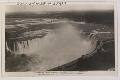 Keywords: Niagara Falls from the Air (HS85-10-35903) original.tif Niagara Falls from the Air 1919 Institution British Library object history credit line accession number HS85/10/35903 Picturing Canada image 35903 British Library image HS85/10/35903 http //www bl uk/manuscripts/FullDisplay aspx ref HS85/10/35903 PD-Canada-photo PD-1923 thumb left 300px Alternative version of this file Aerial photographs of Niagara Falls 1919 aerial photographs of Ontario Picturing Canada images missing coordinates Photographs by the Canadian Postcard Company