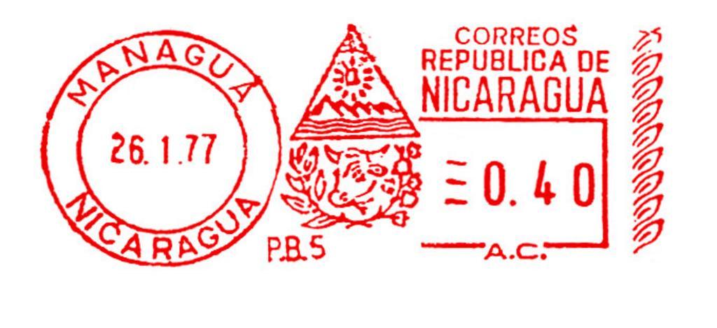 Keywords: Nicaragua stamp type 3.jpg en Meter stamp catalog image Nicaragua type 3 Richard Stambaugh Richard Stambaugh 2013-05-17 Meter stamps
