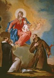 Keywords: Nicola Grassi - Rosary Mother of God with Sts Dominic and Francis of Assisi - WGA10381.jpg Artwork Creator Nicola Grassi Rosary Mother of God with Sts Dominic and Francis of Assisi firsthalf other date century 18 Oil on canvas size cm 161 110 Gornjesavski muzej Jesenice object history credit line accession number ZDS2002048 <br> WGA link 10381 http //www wga hu/art/g/grassi_n/rosary jpg http //www wga hu/html/g/grassi_n/rosary html PD-old-100 painting religious Italian 1701-1750 Nicola Grassi Paintings of Francis of Assisi in Slovenia Paintings of Saint Dominic in Slovenia WGA form painting WGA type religious WGA School Italian WGA time period 1701-1750 Paintings of Our Lady of the Rosary in Slovenia 18th-century paintings of Madonna and Child Paintings in the Jesenice Upper Sava Museum Saint Dominic receives the Rosary 18th-century oil on canvas paintings in Slovenia 18th-century religious paintings in Slovenia |
