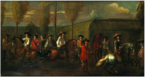 | Keywords: Nicolaas van Eyck - Riding School.jpg Artwork Creator Nicolaas van Eyck 1627 - 1679 http //www artnet com/artists/nicolaas-van-eyck/école-déquitation-YzQ57riFnB-OJbL3f3O66A2 Oil canvas cm 54 102 accession number object history credit line signed lower left N van Eyck Lempertz 2004-05-22 Cologne lot 1046 PD-old-100 Nicolaas van Eyck History of cavalry through painting |