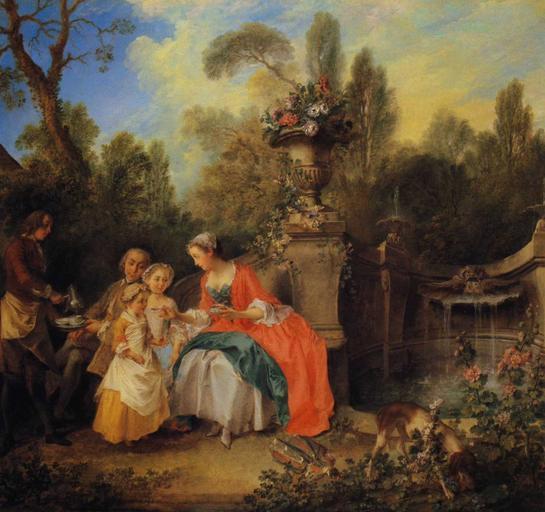 Keywords: Nicolas Lancret - A Lady and Gentleman Taking Coffee with Children in a Garden.JPG Artwork creator Nicolas Lancret A Lady and Gentleman Taking Coffee with Children in a Garden probably 1742 oil canvas cm 88 9 97 8 credit line Bequeathed by Sir John Heathcoat Amory with life interest to Lady Amory by whom presented 1973 accession number NG6422 Museum National Gallery London cite web http //www nationalgallery org uk/paintings/nicolas-lancret-a-lady-in-a-garden-taking-coffee-with-some-children/ /key-facts Key facts 2010-09-18 source other versions PD-old-100 Nicolas Lancret 1742 paintings Rococo paintings in the National Gallery London Garden vases in art French paintings in the National Gallery London 18th-century way of life 18th-century childhood in painting |