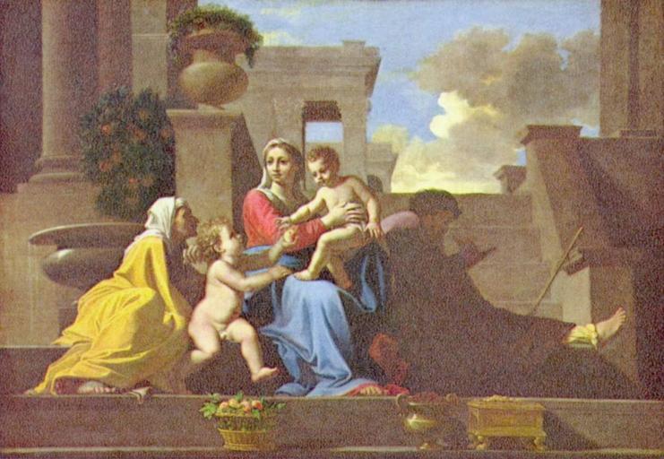 Keywords: Nicolas Poussin - La Sainte Famille à l'escalier.jpg Nicolas Poussin - Holy Family on the Steps - WGA18323 jpg Artwork de Heilige Familie auf der Treppe Oil on canvas cm 69 98 Institution National Gallery of Art Copy of a painting in the Cleveland Museum of Art cf Thuillier Nicolas Poussin 1994 p 259 Yorck and http //www nga gov/fcgi-bin/tinfo_f object 41664 de 2 Drittel 17 Jh en 2nd third of 17th century After http //mail wikipedia org/pipermail/wikide-l/2005-April/012195 html Other versions PD-old-100 PD-Art-YorckProject Paintings after Nicolas Poussin Baroque paintings of saints Stairs in art Madonna and Child with Saint Anne Paintings of Holy Family with John the Baptist 1648 oil on canvas paintings in the United States 17th-century religious paintings in the United States 17th-century paintings of Holy Family 17th-century paintings of Christian saints Sitting on stairs Paintings of fruit baskets |
