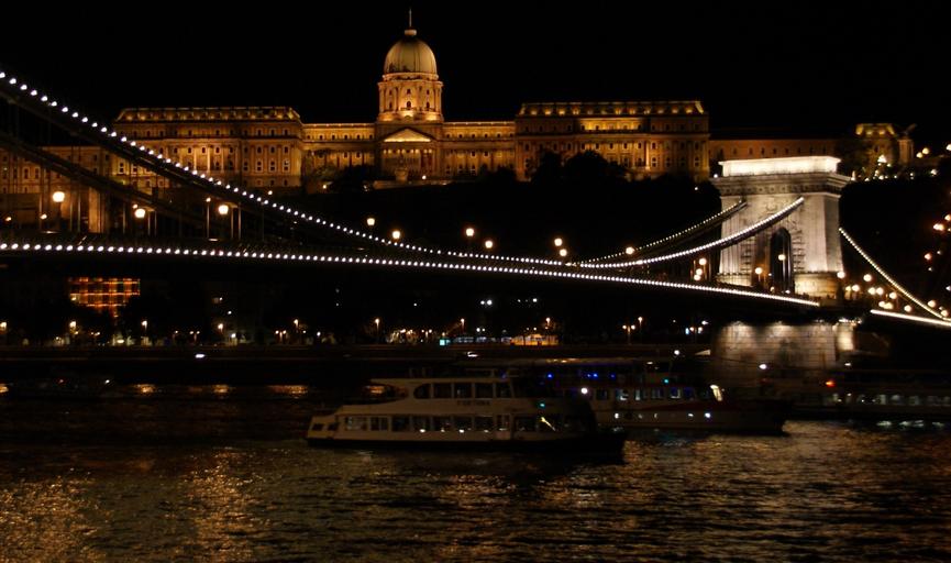 Keywords: night bridge city budapest chain bridge castle evening scenic