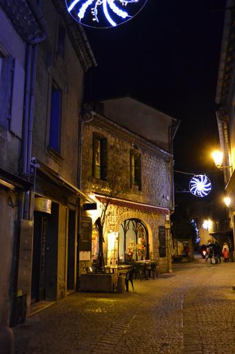 Keywords: night christmas medieval street carcassonne garland medieval city france medieval pavement fir paved street medieval house