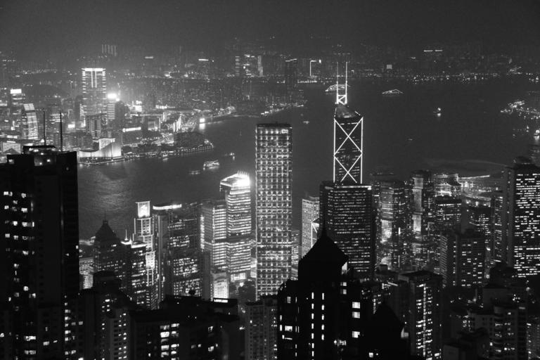 Keywords: night city view cityscape china hong kong asia scenic cold scenery black and white chinese travel urban building architecture modern skyscraper tourism tower skyline landmark