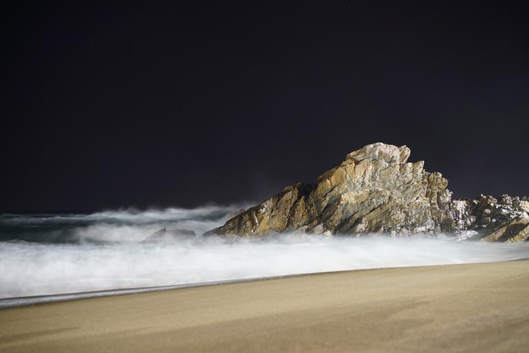 Keywords: night night-time the night sea landscape rock sea beach coastal east coast waves nature winter sea sand republic of korea