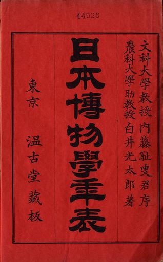 | Keywords: Nihonhakubutsugakunenpyo.jpg en Shirai Mitsutarō A chronological table of natural history in Japan Tokyo 1891 (With an preface by Naitō Chisō Mitsutarō Shirai 1863-1932 was a Japanese plant pathologist mycologist and herbalist covering both traditional herb studies honzōgaku and modern science This book was re-edited and reprinted several times It refers to source materials some of which have been lost later Collection W Michel Fukuoka ja 内藤 叟序 白井光太郎著 日 博物学年表 京 温古堂蔵 明治二十四年刊 de Shirai Mitsutarō Chronologische Tafel der Naturkunde in Japan Tokyo 1891 (Mit einem Vorwort von Naitō Chisō Mitsutarō Shirai 1863-1932 war ein japanischer Naturforscher dessen immenses Wissen sowohl die traditionelle Heilmittelkunde honzōgaku als auch die modernen Naturwissenschaften umfasste Diese Chronologie enthält eine Reihe von Informationen aus Quellen die später verloren gingen Collection W Michel Fukuoka own WolfgangMichel 2013-02-14 Books about Japan History of Science and technology in Japan History of botany Cc-zero |