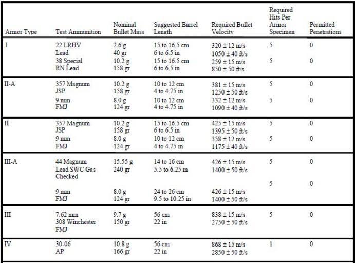 Keywords: NIJ table.JPG en NIJ ballistic chart NIJ standard INKAS Armored 2010-10-10 Tables information