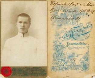 Keywords: Nikolay Matsokin student 1908 Vladivostok.jpg en Nikolay Matsokin student of Far Eastern Federal University Vladivostok 28 08 1908 Photo sent to Poltava for his first wife Anastasia ru иколай ацокин студент Восточного института в г Владивостоке 28 08 1908 г Фото отп авлено на имя своей пе вой жены Анастасии в г Полтаву 1908-08-28 Family archives F I Podzorov other versions PD-old-70-1923 Uploaded with UploadWizard Nikolay Matsokin