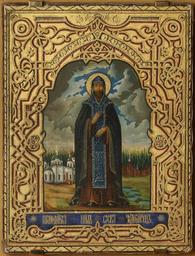 Keywords: Nil Sorsky (20th c., Atheism museum).jpg Икона «Св ил Со ский» Святой изоб ажен в ост в монашеском одеянии в схиме в левой уке четки а заднем плане слева белокаменные здания х амов ило-Со ской пустыни сп ава на д угом бе егу еки де евянные пост ойки Иоанно-П едтеченского скита за де евянной ог адой Фигу ные о наменти ованные поля имити уют п о езную аму Госуда ственный музей исто ии елигии Идентификационный номе КП-42192 ате иалДе ево масло есто созданияРоссия Разме 38 5 х 28 5 см ил Со ский около 1433-1508 гг к упнейший деятель заволжского ста чества известный духовный писатель Обосновывал идеи духовного нестяжательства и скитского монашеского жития Составил один из пе вых монашеских уставов где изложены ступени спасительности «мысленного делания» и аскетические идеи в духе восточного исихазма От скита на одной сто оне еки Со ы где жил ил на д угом ее бе егу об азовался общежительный монасты ь п еоб азовавшийся в ило-Со скую пустынь С се едины XIX в на месте де евянных це квей ст оились каменные п и закладке каменного х ама Тихвинской Богомате и на месте С етенской и Иоанно-П едтеченской це квей были об етены мощи п еподобного В 1862 г для его мощей в пятиглавом Тихвинском х аме была соо ужена ака а месте кельи святого пост оен де евянный Иоанно-П едтеческий скит ядом де евянный Успенский скит В 1907 г в пустыни ши око отмечали 400-летие кончины св ила Со ского Ве оятно данная икона была создана в этот пе иод Изоб ажение святого на иконах вст ечаются к айне едко http //vm1 culture ru/muzey_istorii_religii/catalog/0002500483/ ачало ХХ в Россия 20 PD-RusEmpire Saint Nil Sorsky Icons in Museum of history of religion Files uploaded by Shakko from various sources Icons of saints with buildings on the background Russian Revival applied arts PD-old