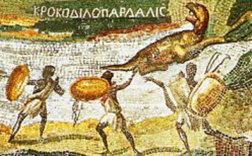 | Keywords: NileMosaicOfPalestrina2.JPG A section of the Nile Mosaic of Palestrina Circa 100 BCE Greek text reads KROKODILOPARDALIS transliterated as Crocodile-Leopard NileMosaicOfPalestrina jpg 2008-09-22 18 38 UTC derivative work Subtlevirtue <span class signature-talk >talk</span> NileMosaicOfPalestrina jpg Subtlevirtue <span class signature-talk >talk</span> 18 40 22 September 2008 UTC NileMosaicOfPalestrina jpg PD-old original upload log This image is a derivative work of the following images Image NileMosaicOfPalestrina jpg licensed with PD-Art PD-old 2006-12-10T14 13 00Z PHGCOM 1196x1653 4859631 Bytes <nowiki>Nile Mosaic of Palestrina Circa 100 BCE </nowiki> Uploaded with derivativeFX Nile Mosaic from Palestrina |