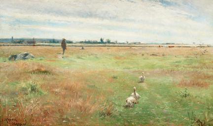 Keywords: Nils Kreuger-Landskap med gäss, Mörbylånga.jpg Landskap med gäss Mörbylånga creator Nils Kreuger 1885 oil canvas cm 45 76 www bukowskis com Other versions Nils Kreuger Images from Bukowskis PD-old-auto 1930
