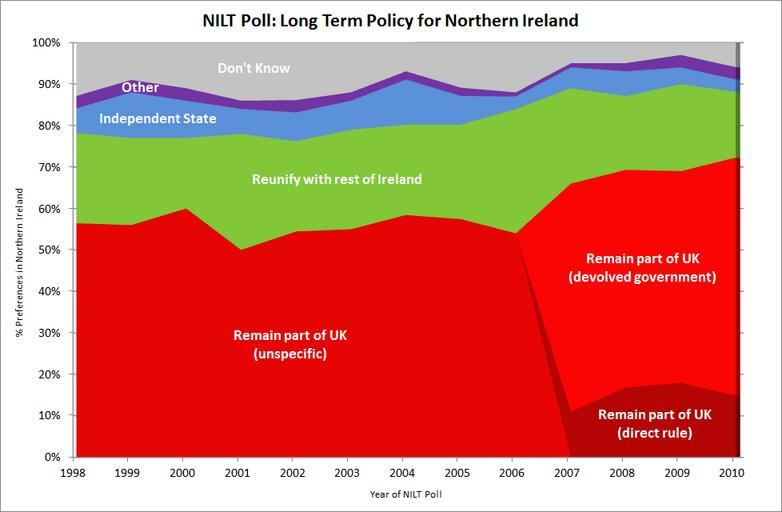 | Keywords: NILT NIRELND2.png graph en Northern Ireland opinion poll on political future Data from the Northern Ireland Life and Times Survey http //www ark ac uk/nilt/ 2011-06-18 own IrishBriton cc-zero Original upload log page en wikipedia Northern_Ireland_Poll png 2011-06-13 12 49 IrishBriton 978×640× 33105 bytes <nowiki>minor visual tweak</nowiki> 2011-06-13 12 46 IrishBriton 978×640× 33580 bytes <nowiki>updated with 2010 results</nowiki> 2011-06-13 12 44 IrishBriton 978×640× 33643 bytes <nowiki>updated version with 2010 results</nowiki> Uploaded with UploadWizard Demographics of Northern Ireland |