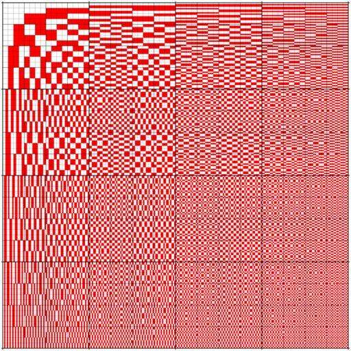 Keywords: Nimber multiplication 8 bit; dual; 7.svg Element 7 of the dual matrix of the https //oeis org/A051775/a051775 txt multiplication table of nimbers 0 255 A051775 0 255; 0 255 It is the product of wp A223537 0 8; 7 and the binary Walsh matrix of order 256 own mate2code Nimber multiplication 8 bit; dual |