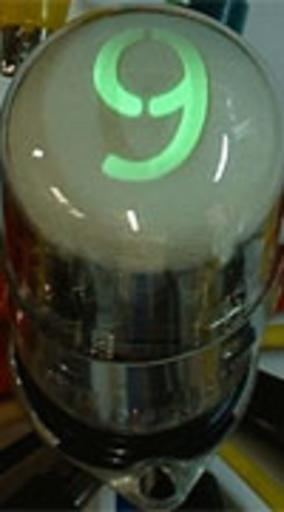 Keywords: Nimo tube BA0000-P31 showing digit 9.jpg Nimo CRT display tube BA0000-P31 made by IEE showing digit 9 Own Alchaemist 2009-09-10 Cathode ray tubes Vacuum tubes Displays 9 number