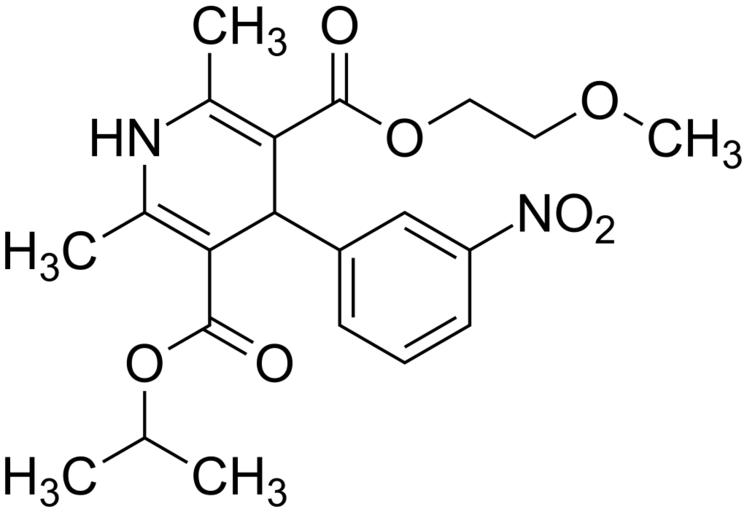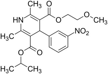 Keywords: Nimodipine 200.svg validSVG Structure of 3-isopropyl 5- 2-methoxyethyl 2 6-dimethyl-4- 3-nitrophenyl -1 4-dihydropyridine-3 5-dicarboxylate Own 2014-03-19 Emeldir <span class signature-talk >talk</span> thumb left Chemical structure verified https //upload wikimedia org/wikipedia/commons/d/dc/Nimodipine_200 svg 1S/C21H26N2O7/c1-12 2 30-21 25 18-14 4 22-13 3 17 20 24 29-10-9-28-5 19 18 15-7-6-8-16 11-15 23 26 27/h6-8 11-12 19 22H 9-10H2 1-5H3 UIAGMCDKSXEBJQ-UHFFFAOYSA-N 66085-59-4 PD-chem Nimodipine |