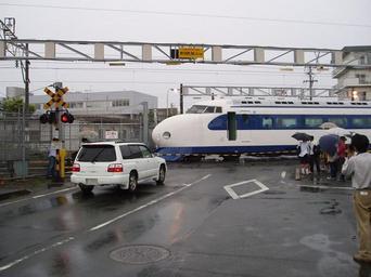 Keywords: Nishi-Iba-Dai-ichi-Cross.JPG An 0 series shinkansen car being moved over the level crossing near Hamamatsu Shinkansen Works in Shizuoka Prefecture Japan ja 西伊場第1踏切 フル規格の新幹線電車が自力で 過する踏切は日 でもここだけ Own Cassiopeia_sweet 2006-07-23 250px Shinkansen 0 Level crossings in Japan Hamamatsu Shizuoka July 2006 in Japan 2006 in rail transport in Japan Photographs taken on 2006-07-23 Taken with Olympus u30D / S-410D / u410D |