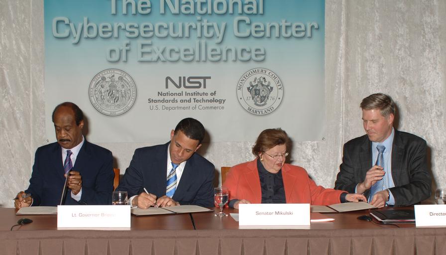 Keywords: NIST Launches New Collaborative Center for Cybersecurity (6774265866).jpg The State of Maryland and Montgomery County Md partner with NIST in the New National Cybersecurity Center of Excellence At the Memorandum of Understanding Signing Feb 21 from left to right Montgomery County Executive Isiah Leggett Maryland Lt Governor Anthony Brown U S Senator for Maryland Barbara Mikulski and Under Secretary of Commerce for Standards and Technology and NIST Director Patrick Gallagher See also http //www nist gov/itl/csd/nccoe-022112 cfm www nist gov/itl/csd/nccoe-022112 cfm Credit NIST Disclaimer Any mention of commercial products within NIST web pages is for information only; it does not imply recommendation or endorsement by NIST Use of NIST Information These World Wide Web pages are provided as a public service by the National Institute of Standards and Technology NIST With the exception of material marked as copyrighted information presented on these pages is considered public information and may be distributed or copied Use of appropriate byline/photo/image credits is requested https //www flickr com/photos/usnistgov/6774265866/ NIST Launches New Collaborative Center for Cybersecurity 2012-02-21 12 35 https //www flickr com/people/63059536 N06 National Institute of Standards and Technology PD-USGov National Institute of Standards and Technology https //flickr com/photos/63059536 N06/6774265866 2016-09-07 02 13 01 United States Government Work Uncategorized 2016 December 20 |