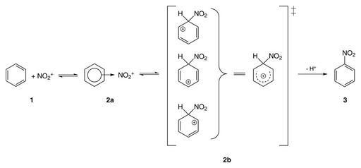Keywords: Nitration benzene.svg Nitration of benzene en Nitrierung von Benzol de own 2008-04-15 Yikrazuul 400px Aromatics Benzene Electrophilic aromatic substitution reactions