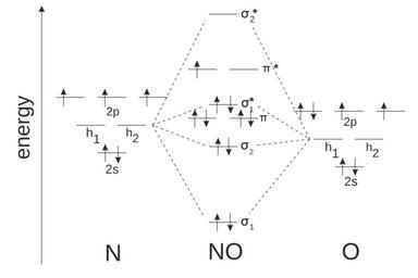 | Keywords: Nitric oxide MO diagram.svg pl Diagram orbitali molekularnych z hybrydami tlenku azotu en Molecular orbital diagram with hybrids of nirtic oxide 2014-02-03 22 20 42 own based on http //www chm davidson edu/vce/molecularorbitals/NO/NO html this site Ptjackyll cc-zero Uploaded with UploadWizard Molecular orbitals energy levels |