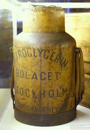 | Keywords: Nitroglycerin AB dynamite heater, TM38053 - Tekniska museet - Stockholm, Sweden - DSC01601.JPG en Exhibit in the Tekniska museet Stockholm Sweden This work is old enough so that it is in the public domain Photography was permitted in the museum without restriction 2014-09-16 own Daderot other versions cc-zero Collections of the Tekniska museet Uploaded with UploadWizard Nitroglycerin | ||||