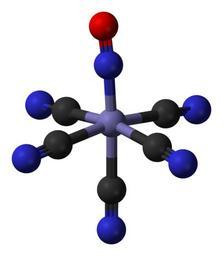 Keywords: Nitroprusside-anion-from-xtal-3D-balls.png Ball-and-stick model of the nitroprusside anion Fe CN <sub>5</sub>NO<sup>2 ˆ’</sup> in the crystal structure of sodium nitroprusside Na<sub>2</sub>Fe CN <sub>5</sub>NO Neutron crystallographic data from http //dx doi org/10 1107/S0108270188013691 Acta Cryst 1989 C45 839-841 Model constructed in http //www crystalmaker com/ CrystalMaker 8 1 Image generated in http //accelrys com/products/discovery-studio/visualization/discovery-studio-visualizer html Accelrys DS Visualizer own 2009-02-23 Ben Mills Benjah-bmm27 Images by Ben Mills Nitroprusside ion |