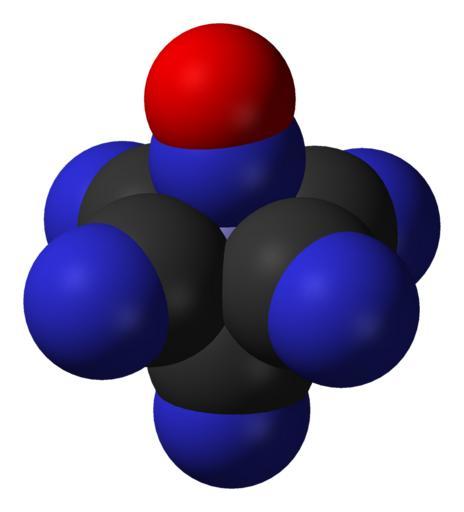 Keywords: Nitroprusside-anion-from-xtal-3D-vdW.png Space-filling model of the nitroprusside anion Fe CN <sub>5</sub>NO<sup>2 ˆ’</sup> in the crystal structure of sodium nitroprusside Na<sub>2</sub>Fe CN <sub>5</sub>NO Neutron crystallographic data from http //dx doi org/10 1107/S0108270188013691 Acta Cryst 1989 C45 839-841 Model constructed in http //www crystalmaker com/ CrystalMaker 8 1 Image generated in http //accelrys com/products/discovery-studio/visualization/discovery-studio-visualizer html Accelrys DS Visualizer own 2009-02-23 Ben Mills Benjah-bmm27 Images by Ben Mills Nitroprusside ion |
