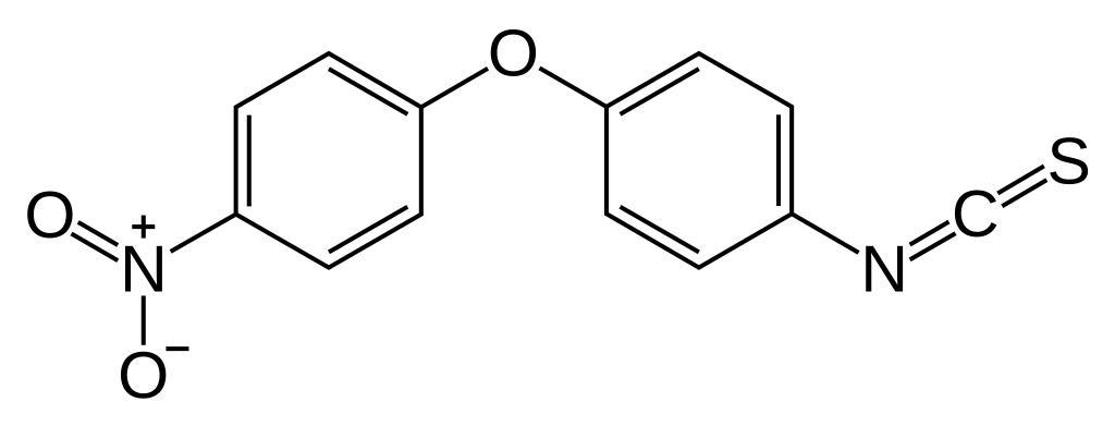 Keywords: Nitroscanate.svg validSVG Skeletal formula of nitroscanate Created using http //www acdlabs com/download/chemsk html ACD/ChemSketch 10 0 and Inkscape Own work after cite book Triggle DJ Ganellin CR MacDonald F Dictionary of Pharmacological Agents Chapman Hall/CRC Boca Raton 1996 2 p 1442 0-412-46630-9 http //books google com/books id A0THacd46Zs 2008-09-10 Fvasconcellos Antihelmintics Phenoxybenzenes Isothiocyanates Nitrobenzenes |