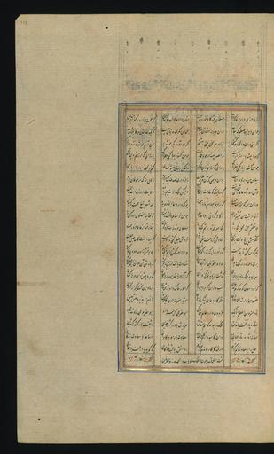 Keywords: Nizami Ganjavi - Colophon - Walters W610119A - Full Page.jpg This folio from Walters manuscritp W 610 contains 1 of 6 short colophons in Arabic with neither date nor scribe's name century 16 AD Safavid ink pigments laid paper cm 32 5 20 accession number W 610 119A 83612 Henry Walters Baltimore date and mode of acquisition unknown Walters Art Museum Henry Walters Acquired by Henry Walters place of origin Iran Walters Art Museum license 2D Khamsa of Nizami Safavid Walters MS 610 Media contributed by the Walters Art Museum needs category review |