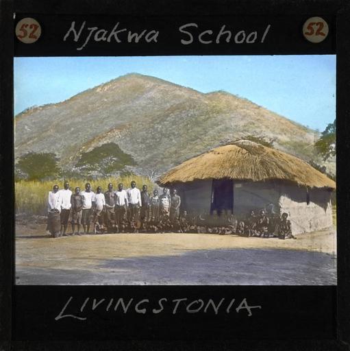 Keywords: "Njakwa School, Livingstonia" Malawi, ca.1895 (imp-cswc-GB-237-CSWC47-LS3-1-052).jpg en <br> Njakwa School Livingstonia Malawi ca 1895 Photograph of Njakwa School in northern Malawi The school building is a small clay structure with a thatched roof A group of children can be seen sitting on the ground outside the school and a row of men and women are standing behind There is a mountain in the background Photographer Unknown Filename imp-cswc-GB-237-CSWC47-LS3-1-052 tif Coverage date circa 1895 Part of collection International Mission Photography Archive ca 1860-ca 1960 Type images Part of subcollection Photographs from the Centre for the Study of World Christianity University of Edinburgh U K ca 1900-ca 1940s Repository name Centre for the Study of World Christianity Archival file impaunpub_Volume7/1438 url Repository address The University of Edinburgh School of Divinity New College Mound Place Edinburgh EH1 2LX United Kingdom Geographic subject country Malawi Format aacr2 1 lantern slide 8 x 8 cm Geographic subject continent Africa Rights Contact the repository for details Part of series Elmslie of the Wild Ngoni LS3/1 Repository email divinity-CSWC ed ac uk Subject lcsh Keyword School buildings; Education Date created circa 1895 Publisher of the digital version University of Southern California Libraries Subject aat genre exterior views Format aat lantern slides Legacy record ID impa-m68448 Access conditions http //www ed ac uk/schools-departments/divinity/research/centres/world-christianity/collections-resources File GB 237 CSWC47/LS3/1/52 1895 author http //digitallibrary usc edu/cdm/ref/collection/p15799coll123/id/64559 PD-old-70-1923 Magic lantern images Images from USC Digital Library uploaded by Fæ International Mission Photography Archive ca 1860-ca 1960
