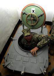 Keywords: NMCB 3 Pacific Region Deployment 130904-N-TD630-010.jpg en Equipment Operator 3rd Class Daniel Jozayt from Naval Mobile Construction Battalion 3 maneuvers through a water-tight hatch or scuttle during a tour of the guided-missile destroyer USS Stethem The shipboard tour allowed Seabees to experience life aboard a Navy warship “ many for the first and only time of their careers The ship is named after Steelworker 2nd Class Robert Stethem who was murdered in Beirut during the 1985 hijacking of Trans World Airlines Flight 847 One of the first battalions commissioned during World War II NMCB 3 ™s legacy stands strong in its ability to build and fight anywhere in the world as either a full battalion or as a group of autonomous detachments simultaneously completing critical engineering and construction missions For this deployment NMCB 3 has split into nine details to perform critical construction projects in remote island areas such as Timor-Leste Tonga Cambodia and the Philippines The teams will also conduct operations in Atsugi Yokosuka and Okinawa Japan Chinhae Republic of Korea and China Lake Calif The Naval Construction Force is a vital component of the U S maritime strategy They provide deployable battalions capable of providing disaster preparation and recovery support humanitarian assistance and combat operations support NMCB 3 provides combatant commanders and Navy component commanders with combat-ready warfighters capable of general engineering construction and limited combat engineering across the full range of military operations U S Navy photo by Builder Constructionman Laine Pulfer Naval Mobile Construction Battalion 3 Public Affairs 2013-09-04 NMCB https //www dvidshub net/image/1010015 130904-N-TD630-010 2013-09-04 21 34 OKINOWA JP PD-USGov-Military-Navy Naval Mobile Construction Battalion 3 Images from DoD uploaded by Fæ |