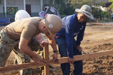 Keywords: NMCB 5 builds school, relationships in Exercise Cobra Gold 2013 130119-N-ZZ999-002.jpg 18 36 45 773 N 98 51 21 708 E alt 309 5_source exif_heading en Chief Steelworker Mike Bonifer center and Builder 1st Class Moses Silva left assigned to Naval Mobile Construction Battalion 5 work together with the Royal Thai Air Force building posts for the site perimeter of a new school building for the Ban Piang Rat School NMCB 5 Det Cobra Gold is participating in the project as part of Exercise Cobra Gold 2013 Cobra Gold is an annual Thai-U S co-sponsored joint and multinational exercise whose participating nations include the Kingdom of Thailand United States Singapore Japan Indonesia Republic of Korea and Malaysia 2013-01-19 U S Navy photo by Lieutenant Junior Grade Jonathan Kim https //www dvidshub net/image/820614 130119-N-ZZ999-002 2013-01-25 18 23 CHIANG MAI TH PD-USGov-Military-Navy Royal Thai Air Force Images from DoD uploaded by Fæ |