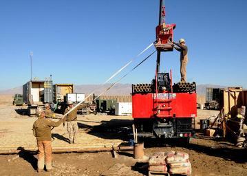 Keywords: NMCB 7 at Forward Operating Base Mescall 120229-N-SD610-005.jpg en Seabees assigned to Naval Mobile Construction Battalion 7 ™s Water Well Detachment guide a cement mixer as it is lowered from a well-tender vehicle at the detachment ™s drill site at Forward Operating Base Mescall NMCB 7 and its detachments are one of two Seabee battalions conducting contingency construction and deconstruction in support of the International Security Assistance Force as part of Task Force Stethem operating in the U S Central Command area of operation 2012-02-29 Chief Petty Officer Yan Kennon https //www dvidshub net/image/535667 120229-N-SD610-005 2012-03-05 22 33 ZABUL PROVINCE AF PD-USGov-Military-Navy Zabul Province Images from DoD uploaded by Fæ |